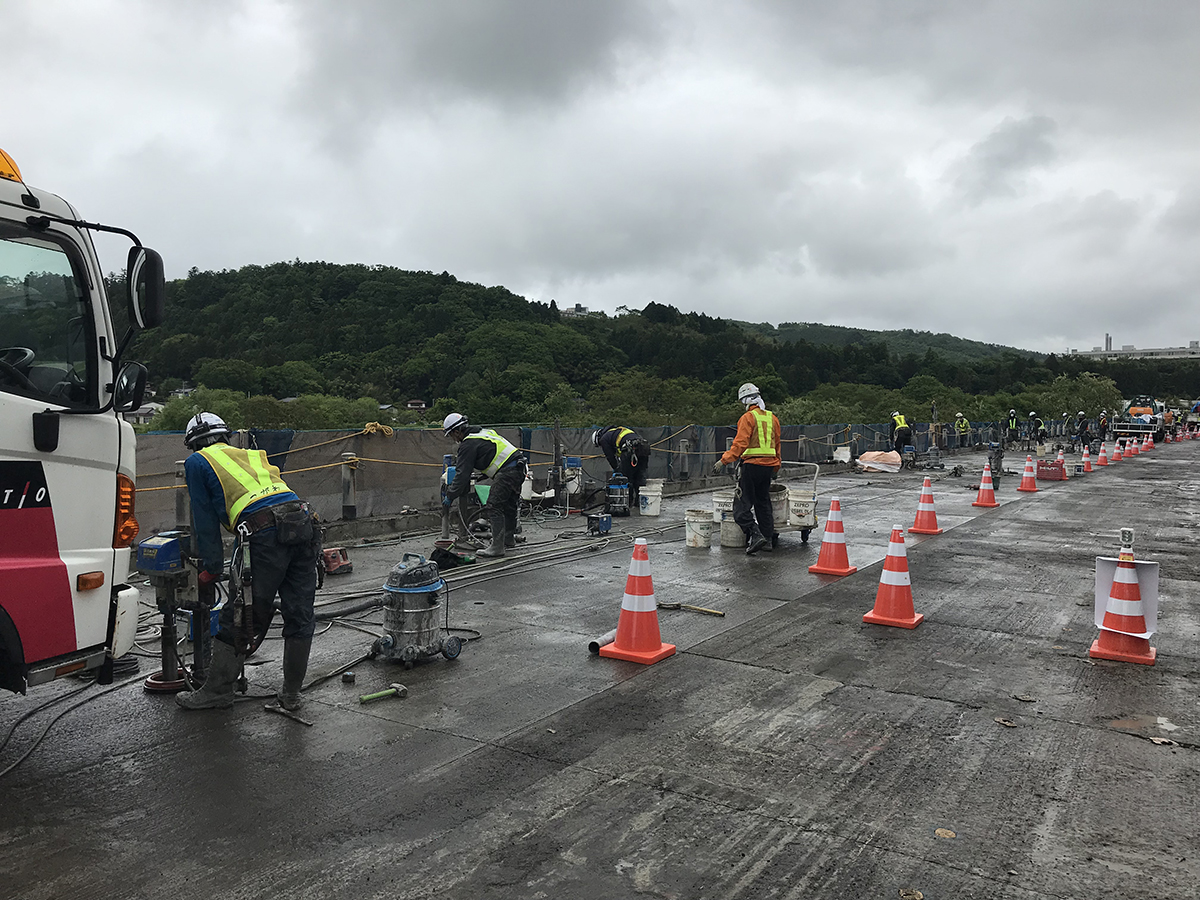 コア削孔と既設床版の切断(大林組・横河ブリッジJV提供)