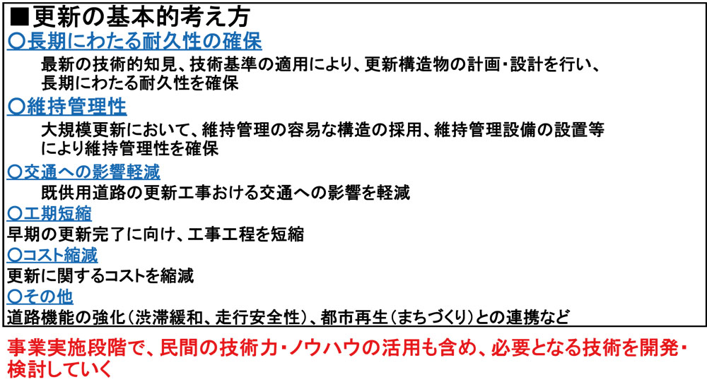 点検技術も補修補強技術もこのように民間が保有している技術をベースに首都高速道路の要求する性能、条件にアレンジする形で開発、活用していければと考えています。