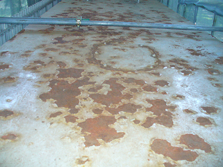 また、伸縮装置の非排水機能の損傷(排水樋が割れなど)により凍結防止剤すなわち塩分を含有した雨水が漏水し、RC橋脚の浮きやひび割れ、鋼製橋脚や支承の腐食などの損傷を招いている箇所が散見されます。