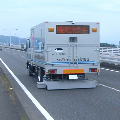 志水 当社で先駆けて採用している技術としては、舗装の上からでも床版の劣化診断が可能な電磁波レーダーによる非破壊検査技術(スケルカ等)を採用しています。床版は下面から見ても床版上面の劣化状況は分からないケースが多く、上面から検査をするには従来であれば交通規制を行い、舗装をはがして検査する必要がありました。スケルカは舗装上から法定速度で走行しつつ、電磁波レーダーにより床版内部の精度の高い点検が可能であるため、その次段階の詳細点検、補修補強のコストが相当程度削減できます。
