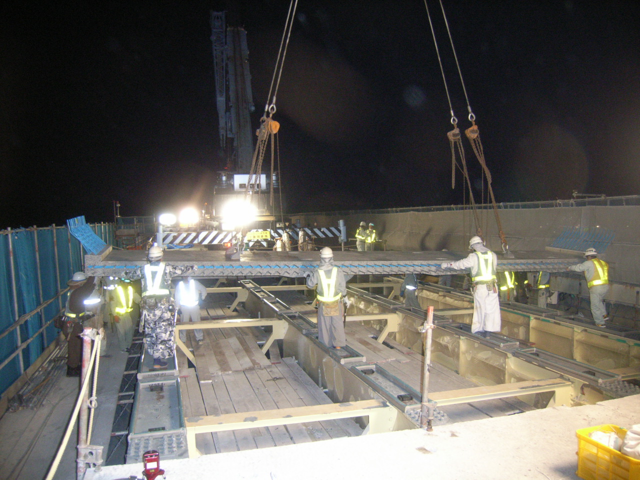 伊芸高架橋の床版取替(夜間)/伊芸高架橋床版取替時の全景写真