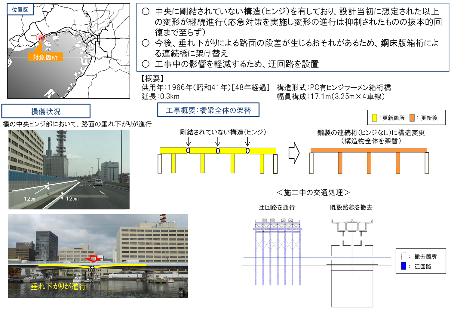 ――喜連瓜破のPC桁について桁そのものを架け替える理由は。喜連瓜破高架橋のような中間ヒンジを有するPC桁はNEXCOや首都高速などにもありますが、たいてい当該部分を連結する形で直していますが