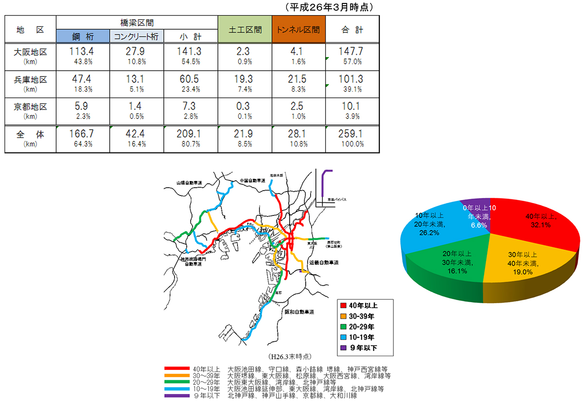 西岡 大きくコンクリートと鋼という比率でいいますとAランク33,000個所のうちコンクリート(桁、橋脚含め)が24%、鋼(同)が13%ぐらいです。残りはジョイントが19%、高欄が8%、支承が4%で、付属物が32%を占めます。