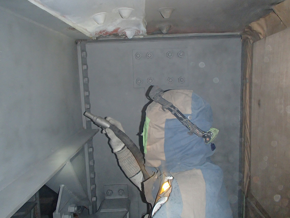 ミストブラストや桁湿潤によるブラスト、塗膜剥離剤などを試験的に施工している
