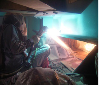 桁端は、まずコンクリート桁の場合、ウォータージェット(WJ)で端部をはつって、断面修復するというのが主な対策になります。また、(止水機能を失った)伸縮装置の交換、桁端部の防水工も組み合わせていきます。鋼橋の場合は、孔食部は当て板を施しますが、それ以外の桁端部は予防保全として金属溶射(TAPS工法)を実施していきます。