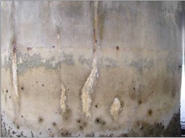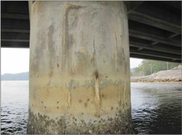 橋脚は、コンクリート桁・床版同様に塩害による損傷が主因です。