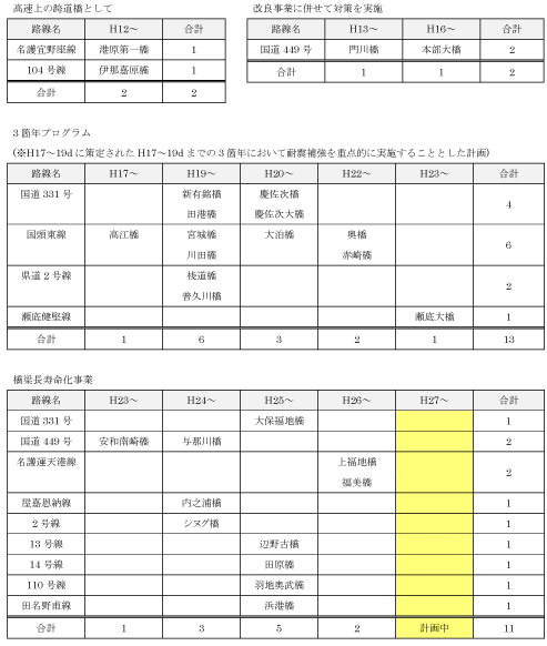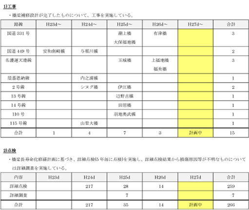また橋梁補修設計が完了したもののうち平成26年度までに15橋の補修工事を実施しています。