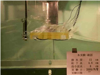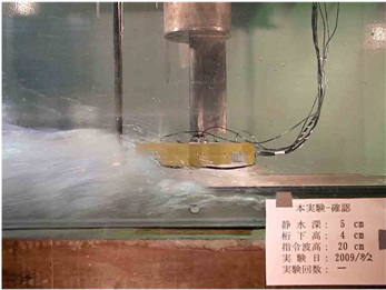 水理実験設備の全体像 非砕波状の波が桁に作用するケース