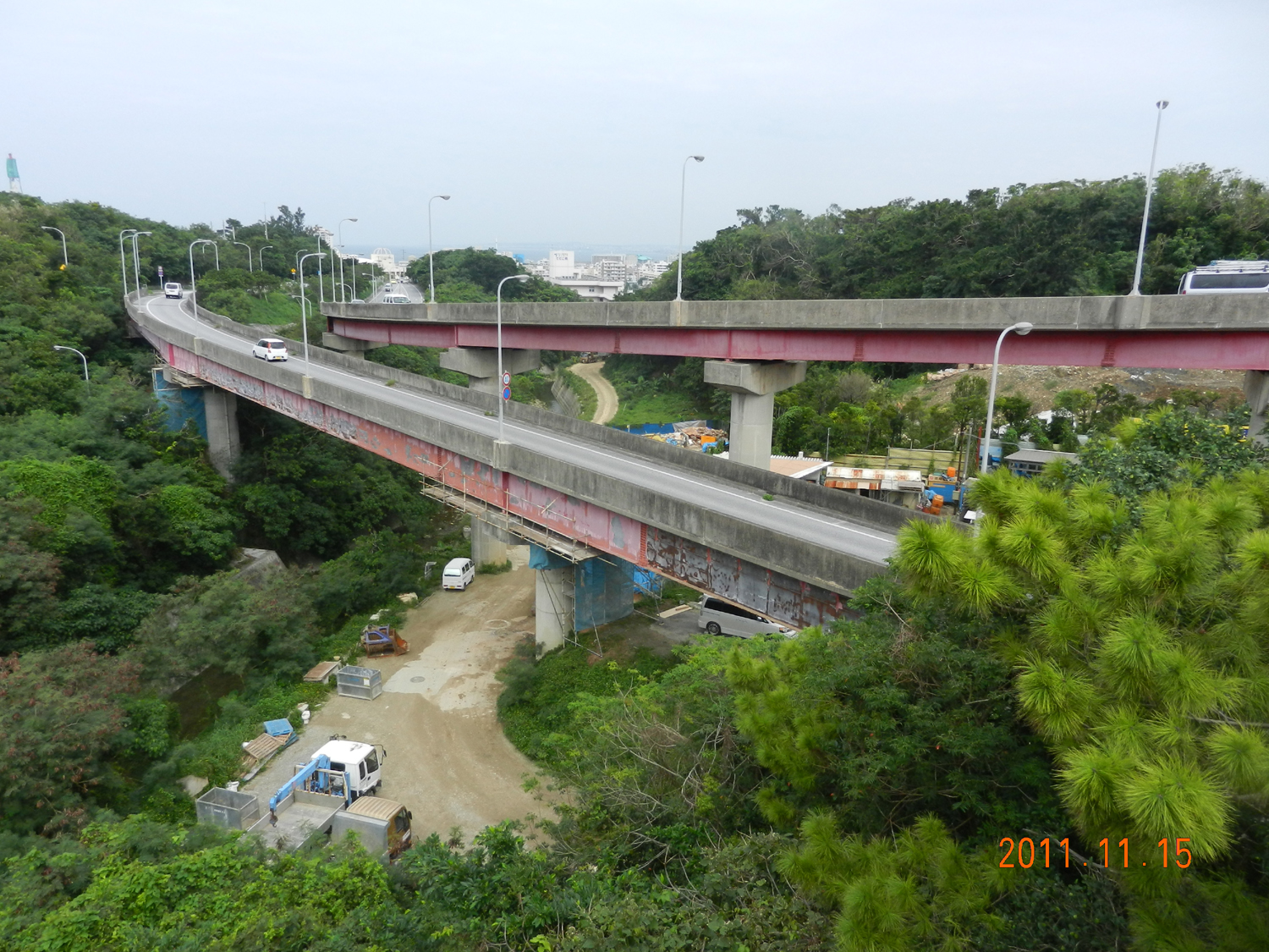 仲村 平成26年度は県道153号のCランプ橋で約2,500平方㍍塗り替えました。27年度は、同Dランプ橋で3,000平方㍍を塗り替える予定です。