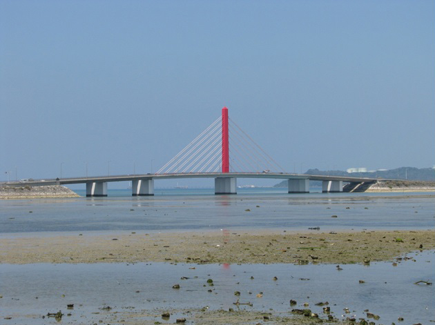 平安座海中大橋の全景 主桁のひび割れ