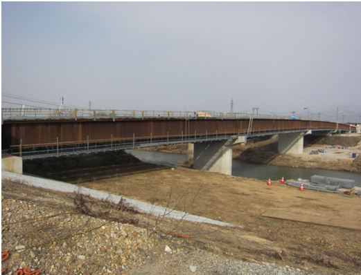村山地方では山形市内で直轄河川(須川)の河川改修事業に伴う飯塚橋の架け替え(橋長212㍍、鋼3径間連続鈑桁)を行っています。現在は上部工の架設を完了し、床版工を進めており、平成27年度中の完成を見込んでいます。