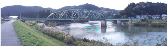 上坂 最も橋長が長い橋梁の架け替えとしては、一般県道余目松山線の最上川に架かる庄内橋の架け替え事業があります。現橋(鋼トラス橋)は架設後50年以上が経過し、平成20年頃に桁の一部に疲労による亀裂が見つかりました。補修を繰り返してきましたが老朽化が著しく、幅員も狭いことから架け替えを選択しました。新橋は橋長464㍍の鋼7径間連続細幅箱桁橋で、現在下部工や取り付け道路の用地買収、改良を進めています。