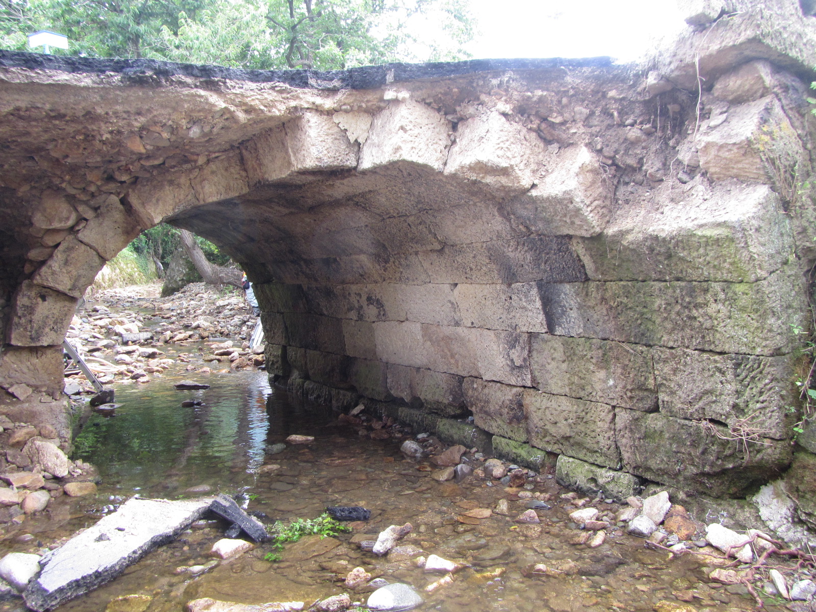 (一)原中川停車場線 小巖橋(選奨土木遺産 山形の石橋群 の一つ)も損傷を受けた(右写真)
