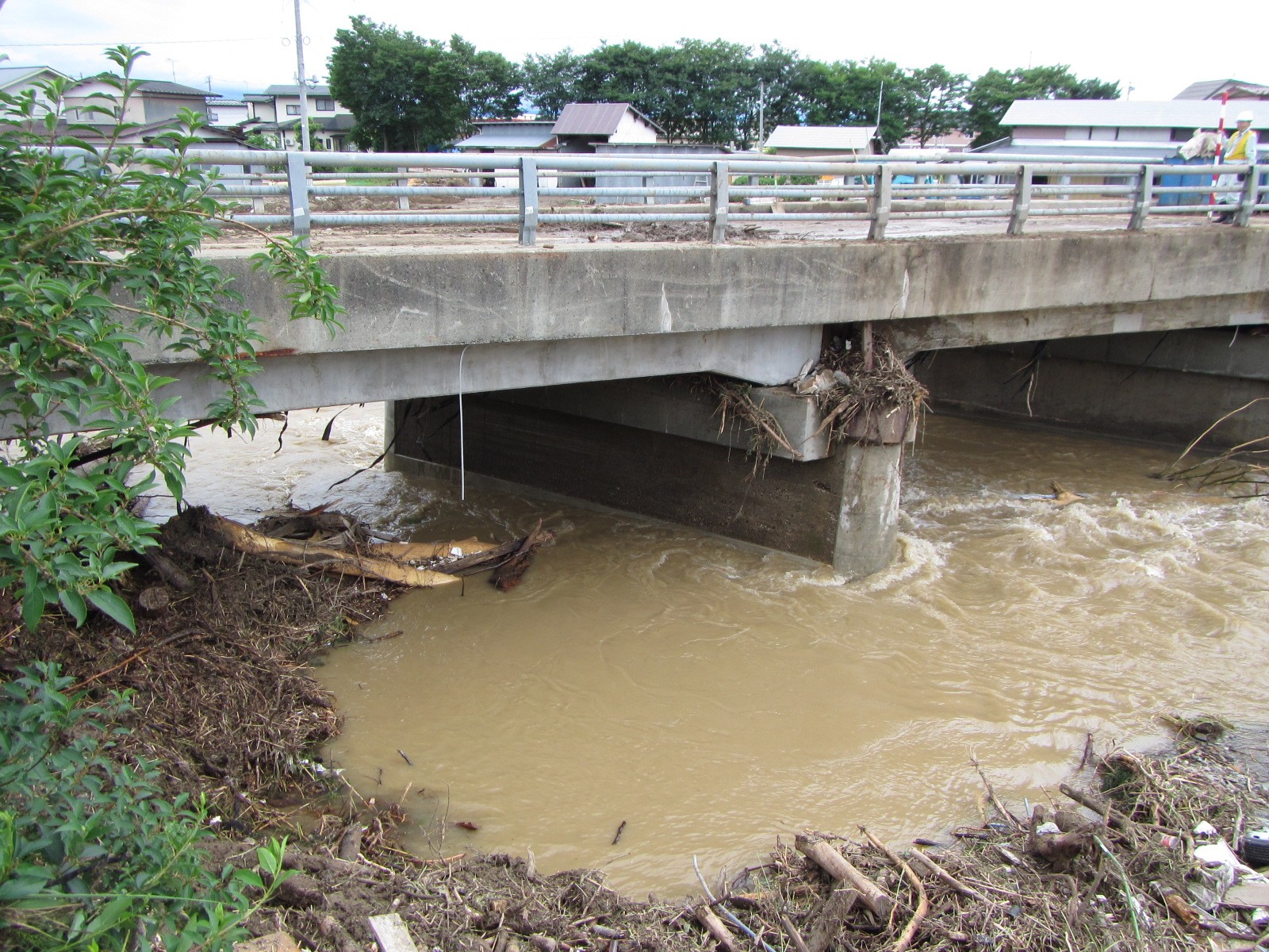 上坂 南陽市を中心とした置賜地域で2年連続大きな水害が起きています。特に昨夏は南陽市の吉野川、織機川流域で甚大な被害が生じています。例えば織機川は並行して県道・市道が走っており、その氾濫によって県道・市道が流失してしまいました。応急復旧は終えていますが、本格的な災害復旧は計画洪水量を見直し、平成29年度までかけて改良復旧を行う予定です。例えば吉野川では、流域の河川の改良およびそれに伴う橋梁の架替えを6橋(国、県、市がそれぞれ2橋ずつ)で行う予定で現在設計を進めています。1967年8月26日~28日に起きた羽越水害で、被害を蒙った多くの河川が改良されましたが、吉野川は被害がなく改良されておらず今次の被害を受けました。橋梁では下部工が洗掘したり桁が損傷したりしており、応急復旧で仮橋を架けています。今回はそこをしっかり治し、橋梁はできるだけ1スパンでとばし、河積阻害率を少なくするなど、安全を確保したいと考えています。