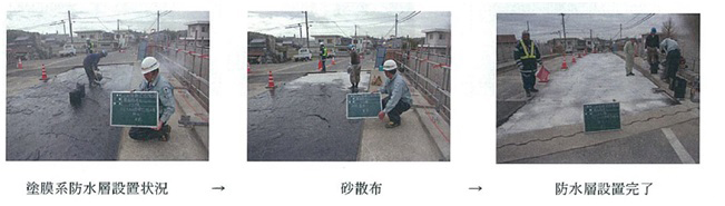 濱 防水は断面修復工やクラック注入工と合わせて実施しており、既設橋梁には塗膜系(アスファルト加熱型)の採用事例が多くなっています。橋梁ごとの床版防水の設置の有無は把握していません。