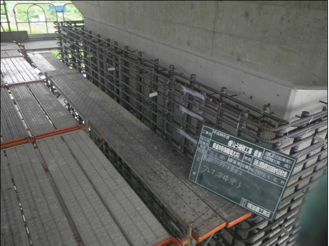 (写真左)県道78号(御殿場大井)足柄大橋コンクリート巻立ての鉄筋組立状況/