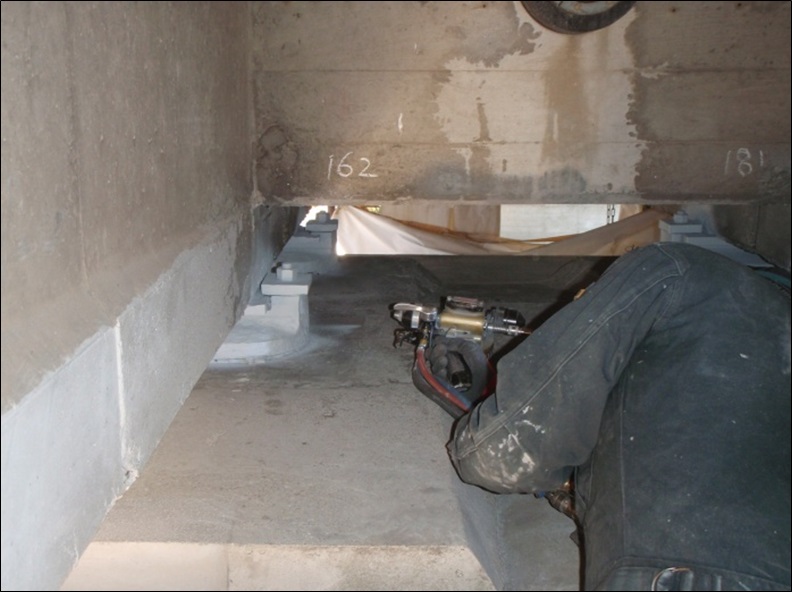 (写真右)国道135号早川橋の支承補修亜鉛アルミ溶射状況