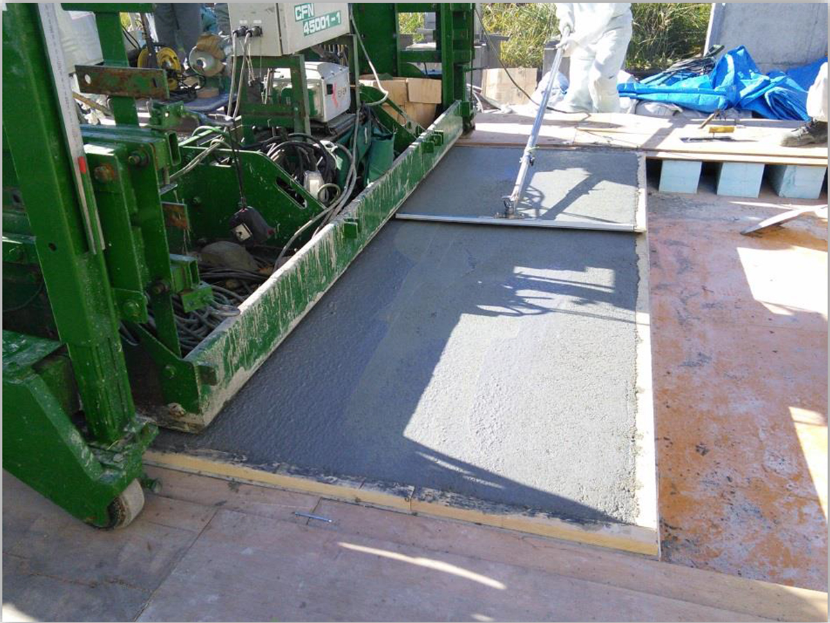 なお、エマルションを含んだ材料を引きずらず平滑に仕上げるため、フィニッシャのスクリードを円筒形に改良しています。