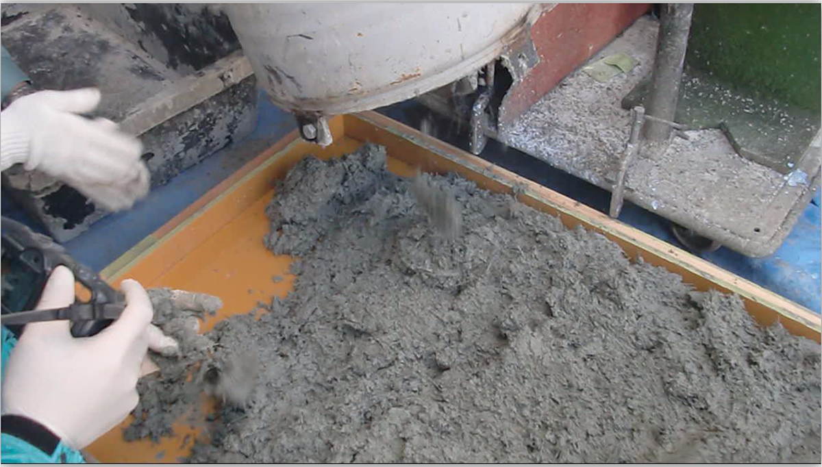 蔵治 首都高速道路の多くのRC床版は下面から補強されています。そのため、前述の舗装打ち換えによって生じる上面の損傷に対しては、力学的な補強ではなく「上面を緻密で不透水なセメント系材料によって覆うことで床版の鉄筋を保護する」というコンセプトで、厚さ50㍉の基層の打換え材料としてPCM舗装を開発しました。被覆による効果を持続させるため、材料開発は層間剥離対策に力点が置かれました。まず、既設RC床版より弾性係数の低い材料を採用することで、層間に発生する応力を低減することにしました。さらなる層間接着力の改善のため、既設床版上面に鋼床版で多くの実績がある高耐久性エポキシ系接着剤を全面塗布することにしました。次に曲げ強度と応力分散を期待して長さ30㍉(φ0.027㍉)のビニロン繊維を添加しています。これに加え、粉体がホース内で閉塞しないよう5㍉径の珪砂を超速硬セメントにプレミックスしています。低弾性化、緻密性、ひび割れ発生抑制に寄与するポリマーエマルションはフィニッシャによる敷き均し性を阻害しない割合で水と混合しています。