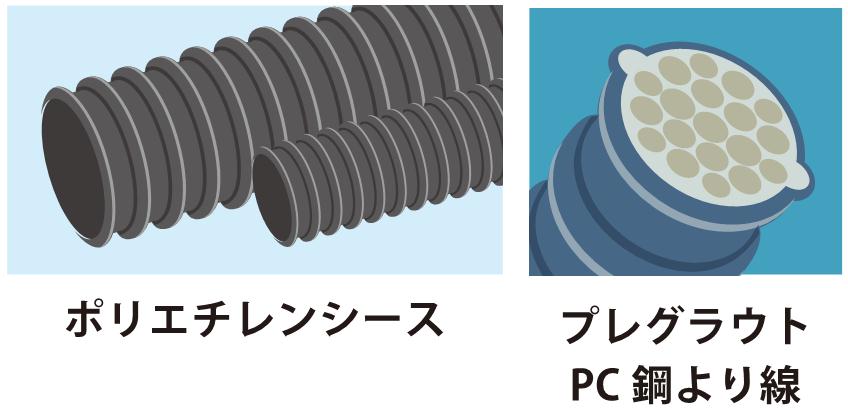 鉄筋のかぶりについては、下部工で90㍉以上、上部工で70㍉以上を確保しています。PCの緊張材の防食については、ポリエチレンシースを用いてPCケーブルを保護していますし、横締めPC部材もプレグラウトPC鋼より線を採用して、品質の確保と施工性の向上を図っています。