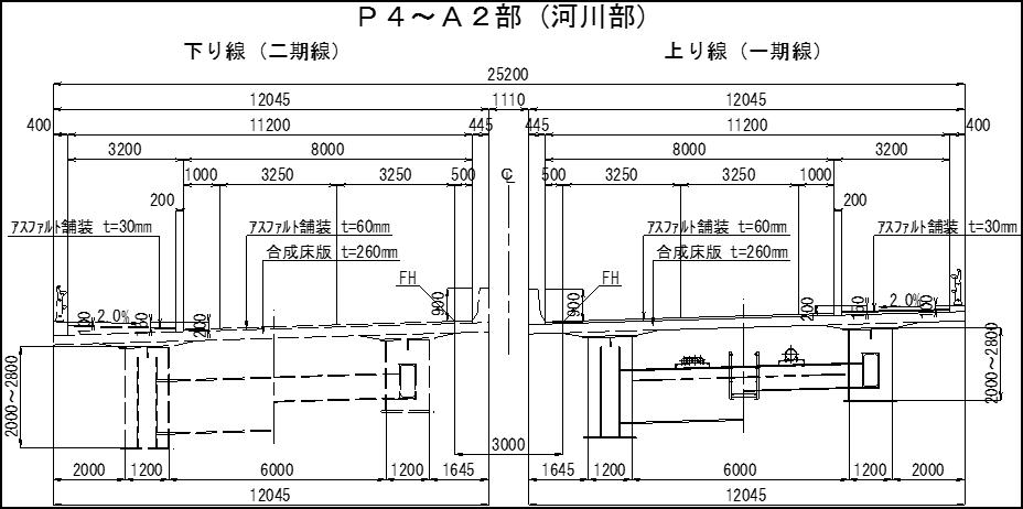 中田 鋼・コンクリート合成床版を用いた少数主桁の合理化橋梁となっていることが特徴です。床版支間が非常に長いため、合成床版で剛性を持たせて、桁本数を減らす構造にしています。