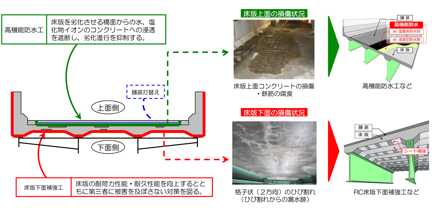 志水 現在のところ床版の取替え、打替えということは考えていません。前回言及した重大な損傷が生じている個所で詳細調査も行いましたが、その結果、砂利化などは生じておらず、構造上致命的な損傷は生じていませんでした。