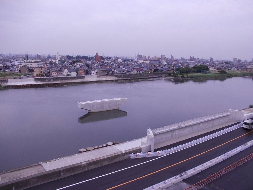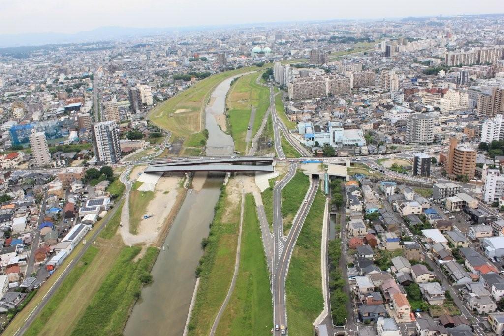 計画中の橋梁としては、三階橋の北に位置し渋滞対策および緊急輸送道路上の橋梁耐震改築として、都市計画道路東志賀町線の水分橋があります。現橋は昭和18年に供用された橋長約203㍍のRC桁橋で、幅員狭小かつ河積阻害率が高いことから、車線を増やすと同時にスパンを飛ばすことで橋脚数も減らす方針です。