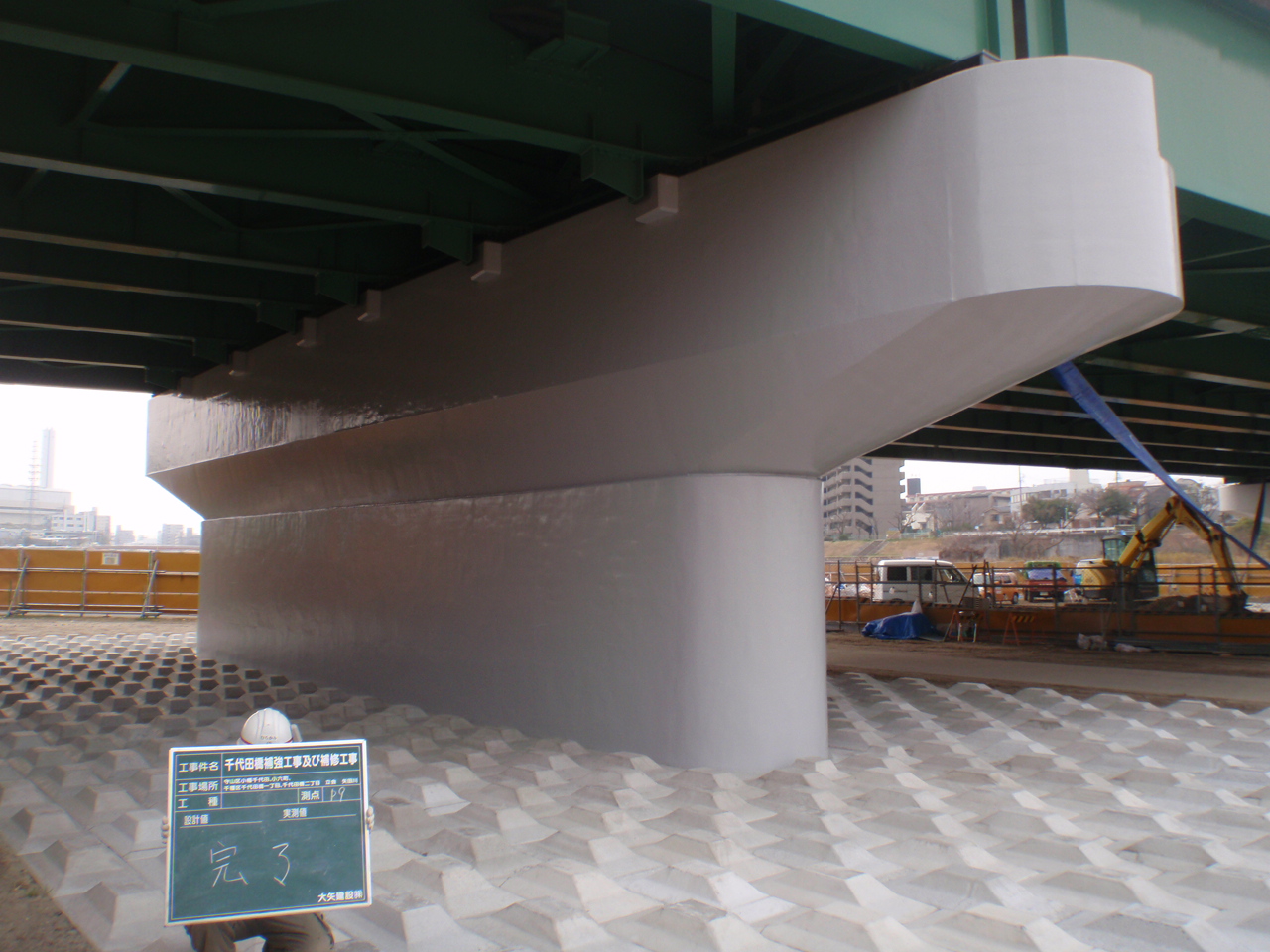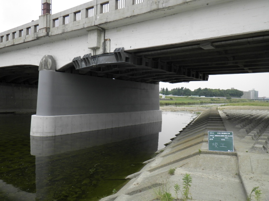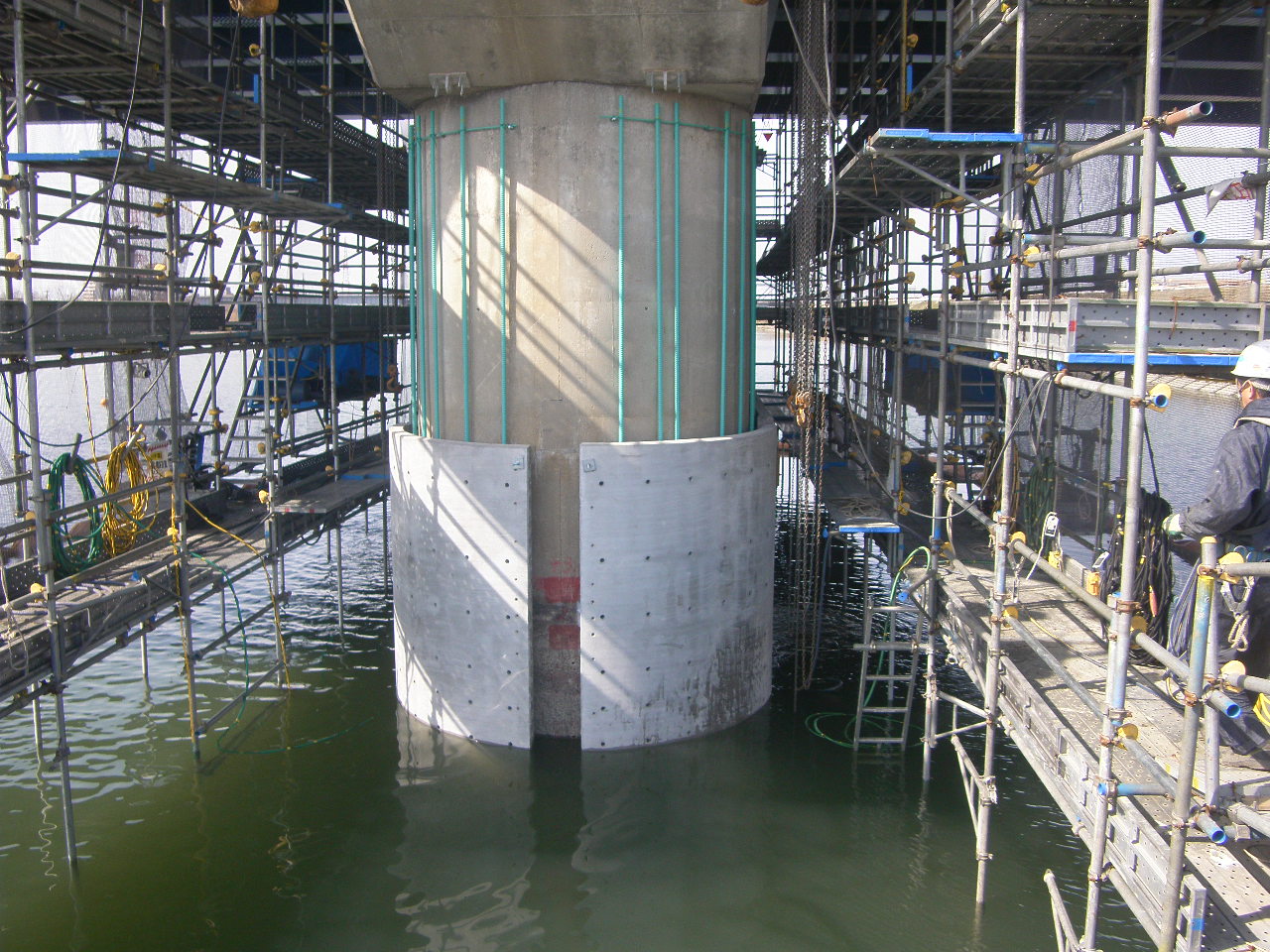 鋼板接着による橋脚耐震補強(矢田川橋)