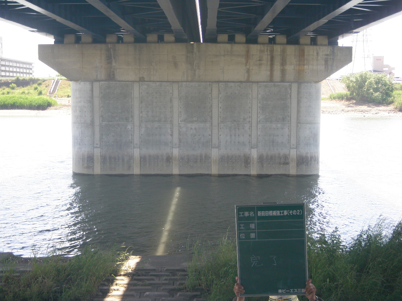新前田橋は河川内橋脚の補強にPCコンファインド工法を採用した