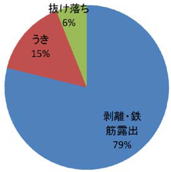 山田 剥離・鉄筋露出が最も多く、次いで浮きや抜け落ちの順になっています。
