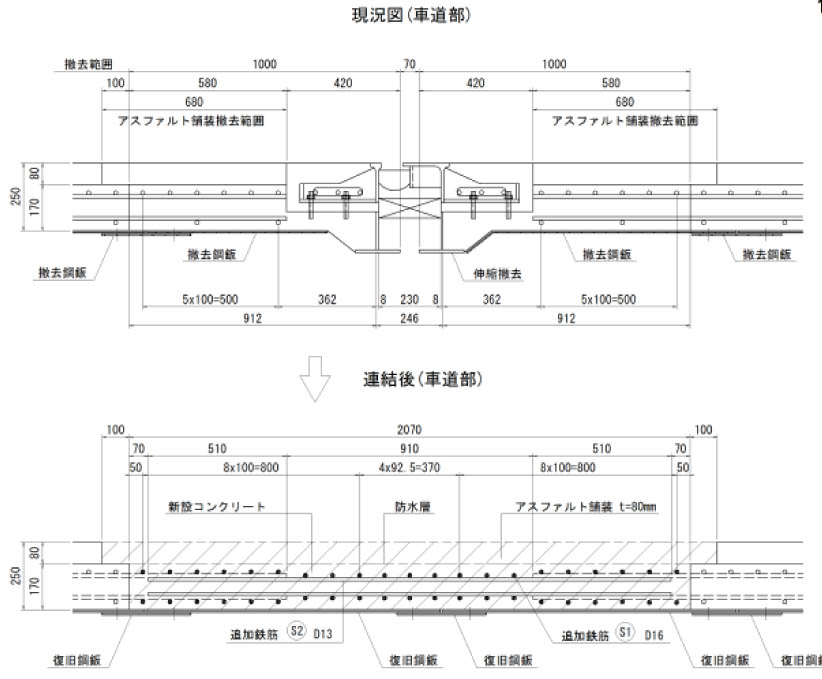ジョイントの取替えは21橋で予定しています。非排水形式のジョイントに取替えるものです。