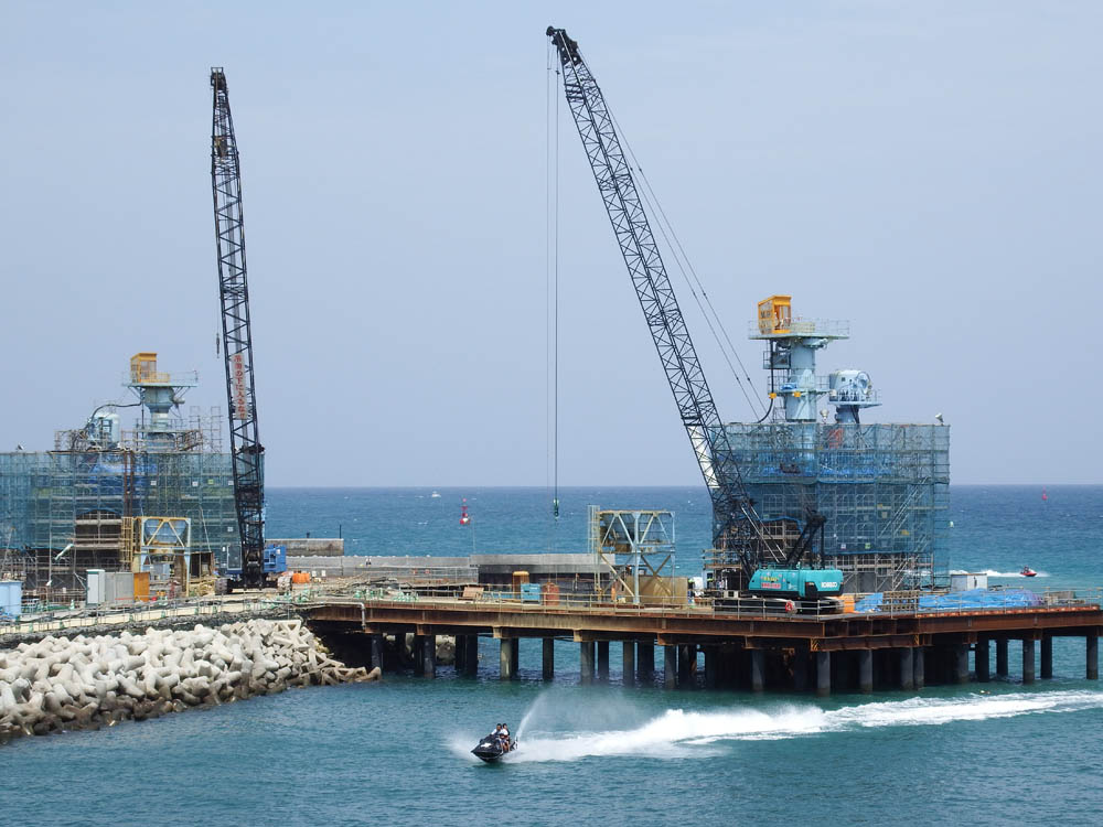 牧湊高架橋のニューマチックケーソン施工(沖縄総合事務局 南部国道事務所)