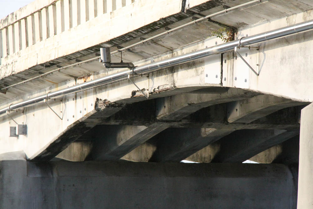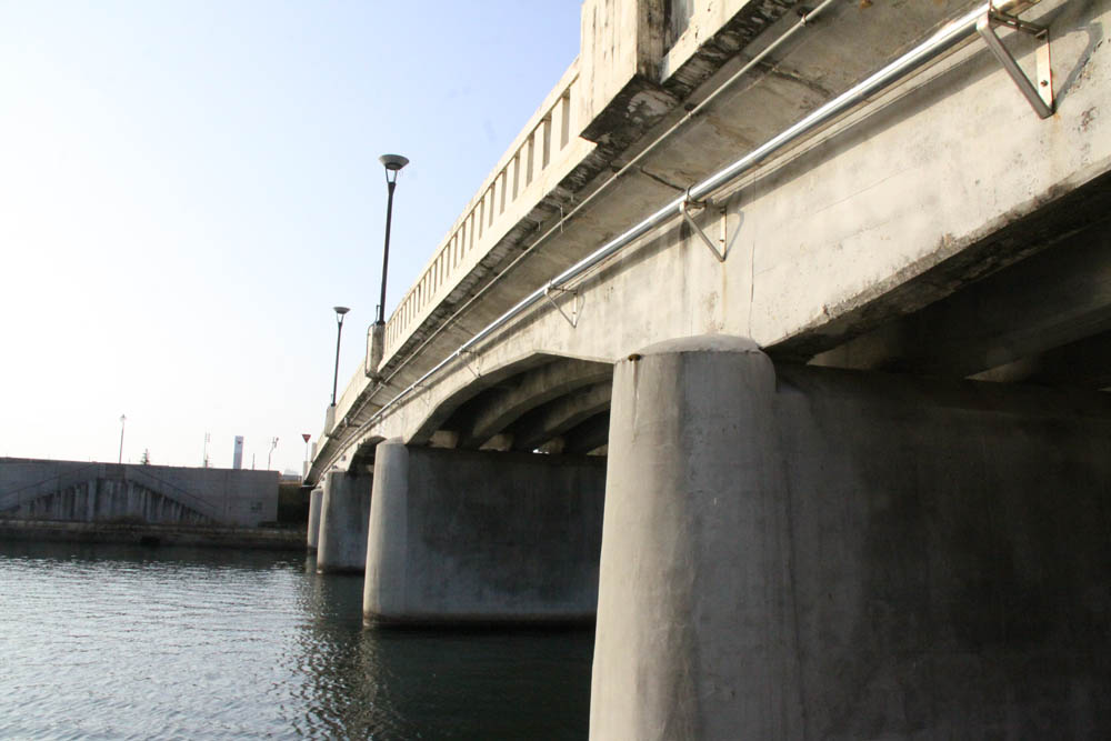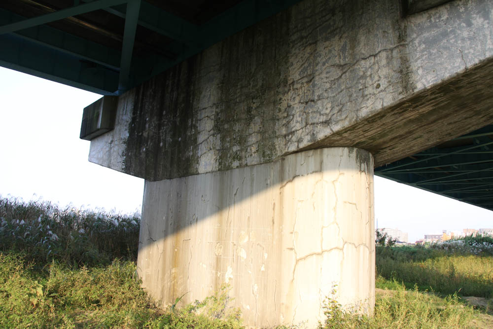 具体的に50年経過(S36以前)した橋梁としては、 安住橋、神通大橋(旧橋)、永代橋、40年経過(S46以前)は 塩倉橋、八田橋、神通大橋(新橋)、八幡橋、30年経過(S56以前)は 呉羽橋、高田橋、開発陸橋などがあります。今回はこのうちの八田橋を架け替えますが、同様にゲルバーを有する永代橋、橋脚にASR起因の損傷を有する神通大橋(新橋)などでも損傷の進行状況を点検しつつ、架け替えないしは 大規模な修繕を検討しています。