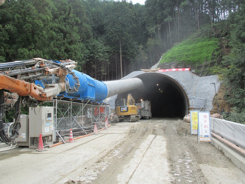 久保 まず国道371号石仏バイパスがあります。山をかきわける様に建設が進められている道路事業です(2ページ目MAP参照)。3工区に分かれておりまして、1工区は既に完了しています。現在は2工区1.9㌔区間の建設を進めています。大阪府の工事では最近では珍しくトンネルがあり、全てNATM工法で掘削しています。