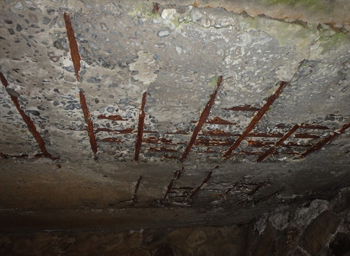 部材別では、RC床版やRC主桁にうき、剥離、鉄筋露出、断面欠損などが多く確認され、鋼製部材では腐食が多く見られています。特にRC床版部分は経年劣化による損傷が顕著に見られます。高度成長期にかけた橋の中では、調査してみるとコンクリート中から丸鋼が出るケースもありました。施工精度という点からみれば古い橋梁の中には問題があるものもあるかもしれません。また、山間地などでは凍結防止剤中の塩化カルシウムが伸縮装置から橋の下面にまわり鋼製桁を腐食させたケースが出ています。