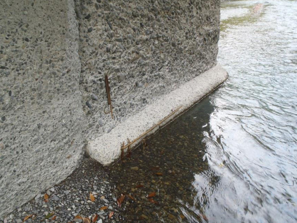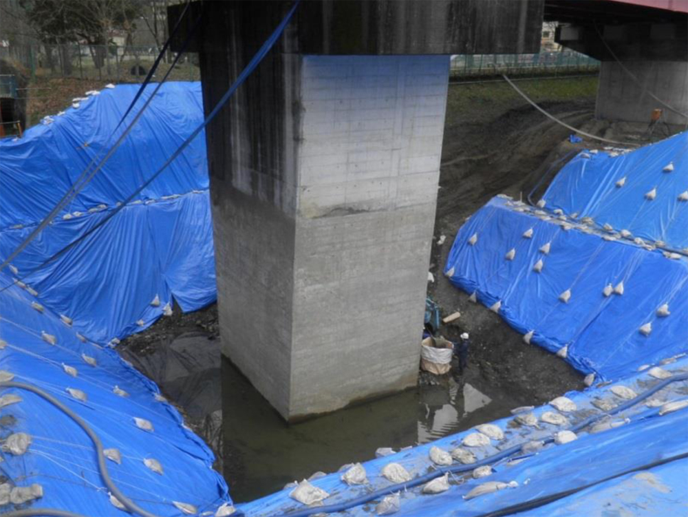 横山橋でアラミド繊維シートおよびPCMを使って橋脚耐震補強