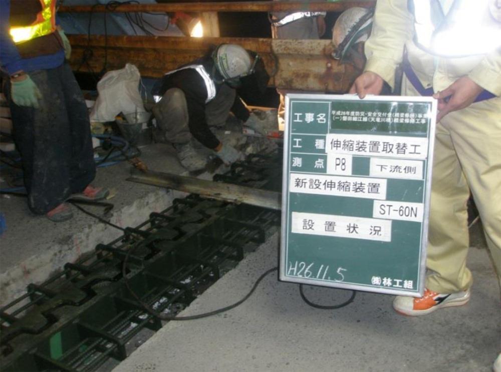 伸縮装置の取替は、27年度は天竜川橋他9橋で施工しました。28年度は(主)天竜東栄線青谷橋他5橋で計画しています。