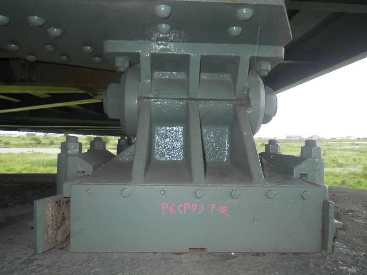 平野 平成27年度の支承補修工事は3件あり、内容は取替が1件、塗装塗替が2件です。支承取替を行っている掛塚橋では、鋼製ローラー支承が腐食してローラーの逸脱が生じたことから、ゴム支承への取替を行っています。他、国道301号鷲津跨線橋、一般県道蔵田島田線小川橋ではそれぞれ塗装塗替を行いました。