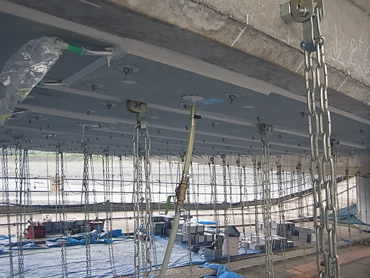 ノージョイント化については、以前、国道362号の榛原郡川根本町徳山に架橋されている淙徳橋(橋長243㍍、PC5径間連続ラーメン箱桁橋)で外ケーブル補強((L=53.938㍍を12組、L=58.5㍍を6組 F200TS)により3箇所ゲルバーヒンジ部を除去し連結化した工事を行ったことがあります。また同工事では主桁側面下面に炭素繊維シート接着(1,902平方㍍)、主桁下面に鋼板接着((t=6~9㍉)470平方㍍)および落橋防止装置システムの設置を行っています。