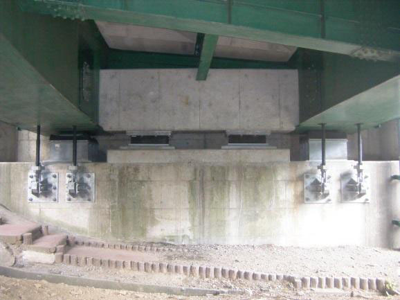 支承交換前(七滝高架橋)/免震支承を採用(七滝高架橋)