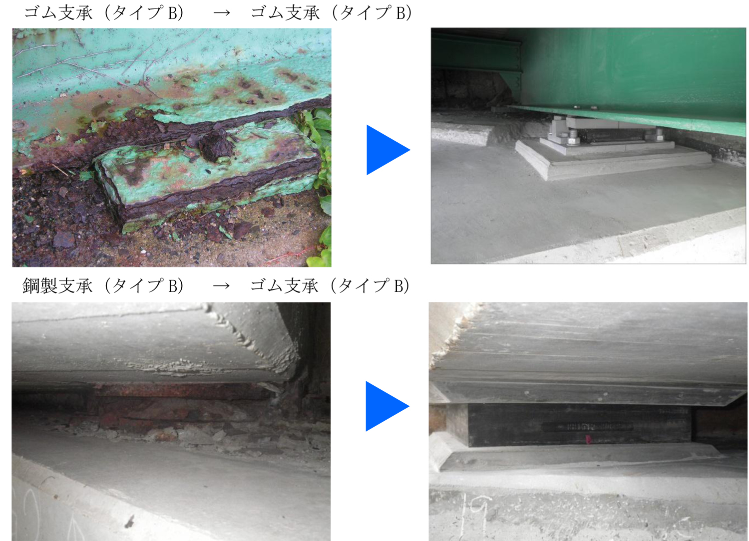 永石 ノージョイント化の事例は最近ありません。支承交換は平成27年度は4橋、28年度は予定がありません。27年度においてはゴム支承および鋼製支承をゴム支承(タイプB)に交換しました。