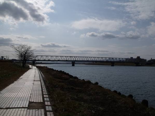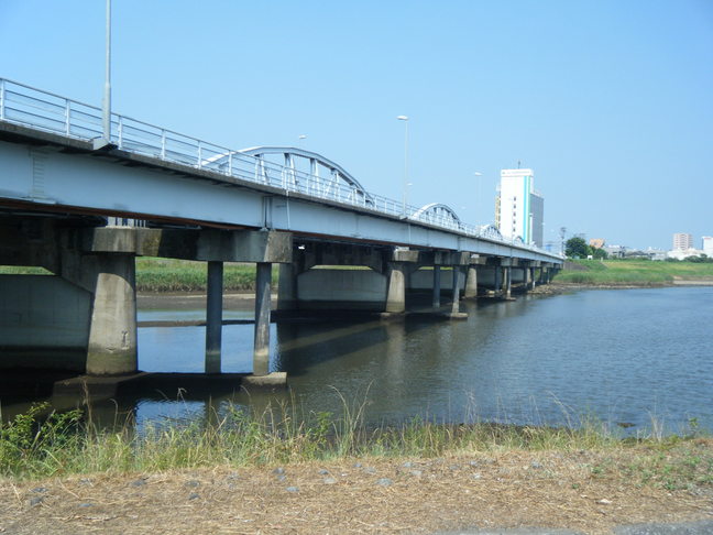 乙津橋を側道橋から見る/河岸から見た乙津橋の桁