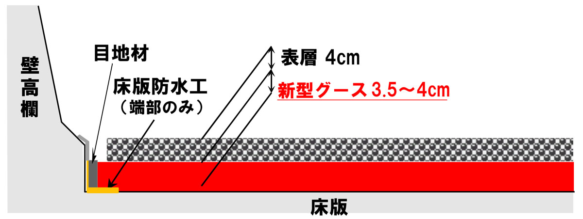 猪熊 通過交通台数が多い箇所については、床版の半割施工での取替などが選択肢として出てくると思います。また、そうした箇所の高機能床版防水工については、集中工事での施工も考慮し、できるだけ短期施工で供用可能な工法(グレードⅡs 4時間で300平方㍍)も追求したいと考えています。グースアスファルト基層を防水工に用いる工法も検討の余地があると考えています。