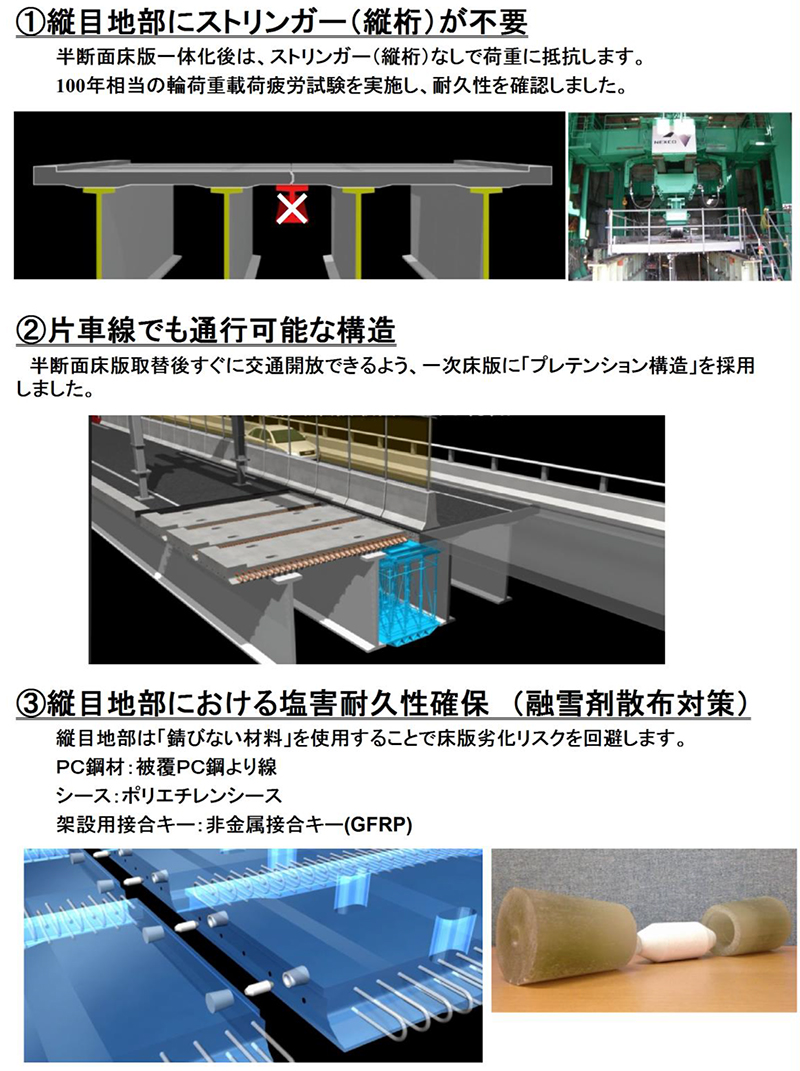 床版の継手構造 施工時間短縮や耐久性向上で優れた技術を採用