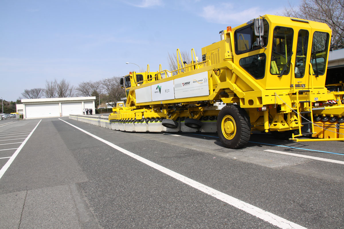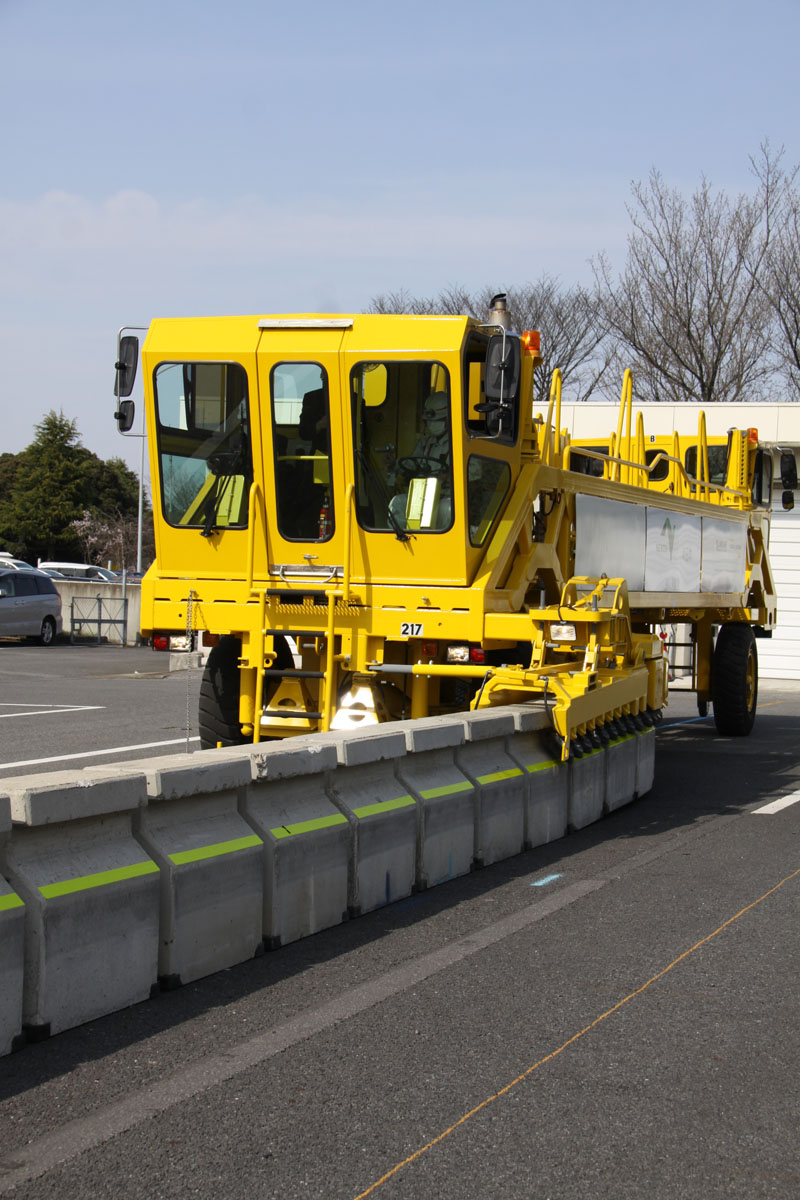 移動式防護柵「ロードジッパー」(谷和原管理事務所での公開時)