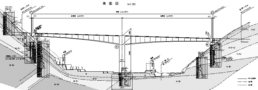 架替橋の側面図と平面図