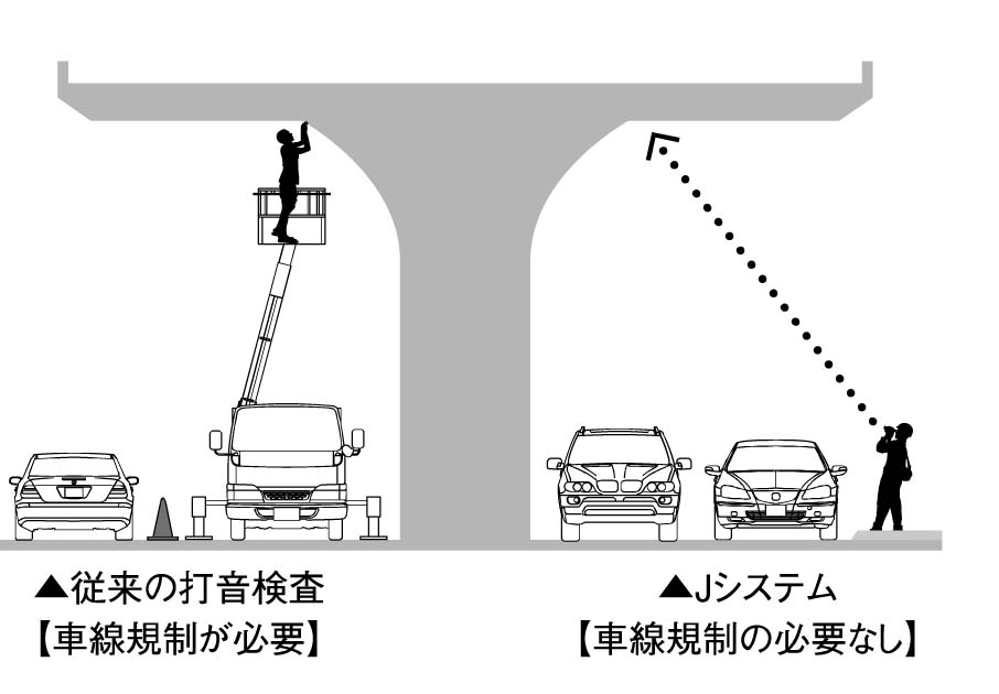 従来手法とJシステムの違い(左)/実際の点検画像(右)