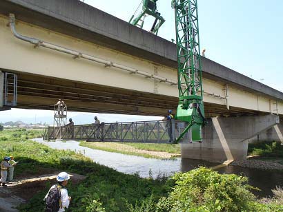 もう1つはトラスや中央分離帯側の張出床版部などの点検の際にロープ高所作業を用いた特殊高所技術点検を採用していこうと考えています。また、今後は点検資産が増える傾向にありますので、点検車の増車に合わせて、従来見えづらかった個所、何回も繰り返し、桁下にアームを差し込まなければいけなかった点を考慮し、作業半径の大きい点検のし易い機能を設けている、新型の橋梁点検車を導入する予定です。
