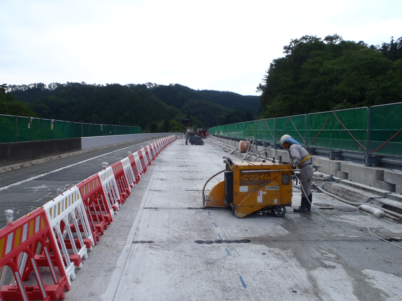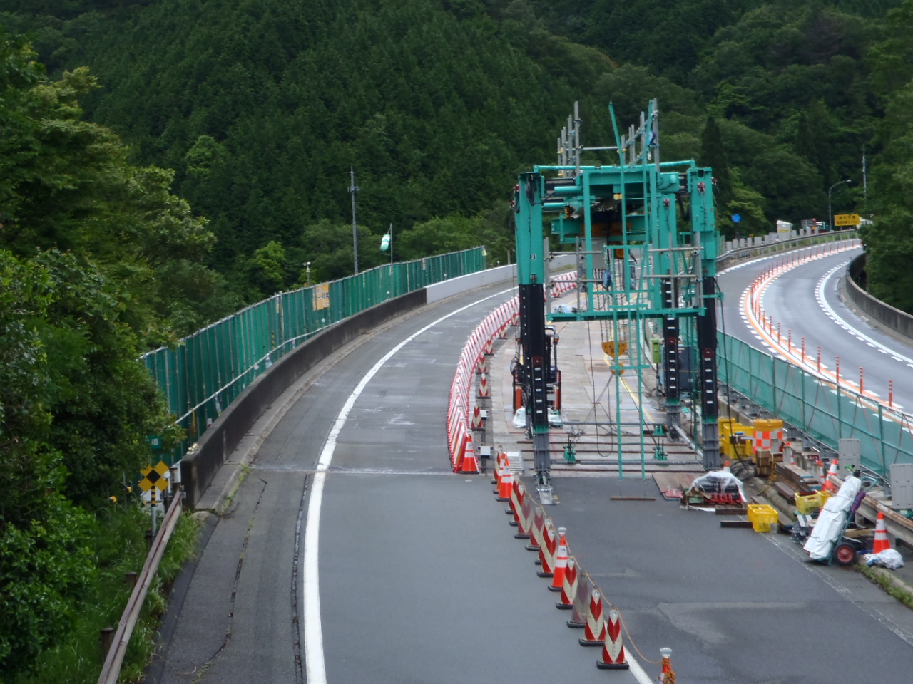 藤井 至近では春に施工が本格化している中国自動車道の道谷第二橋があります。同橋工事では劣化した既設床版を撤去し、プレキャストPC床版に取替えます。ここで半断面床版取替工法を初めて採用しています。