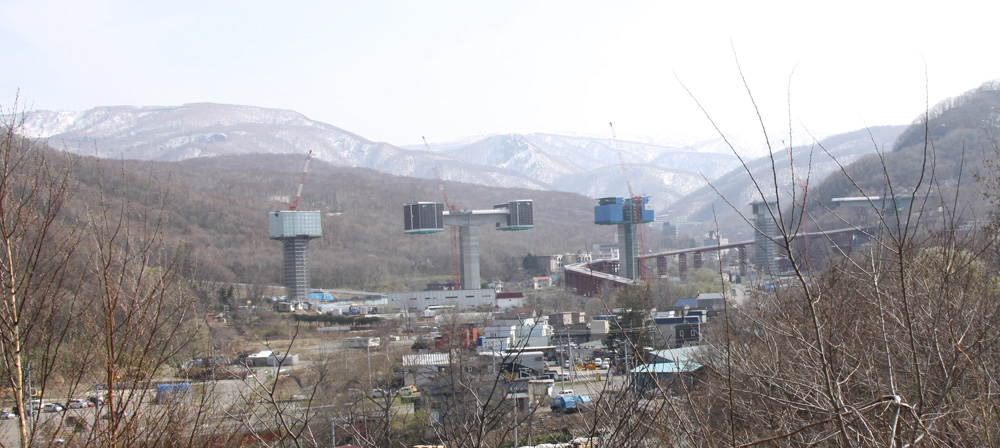 北海道横断自動車道 朝里川橋(PC8径間連続ラーメン箱桁橋、東日本高速道路発注)遠望